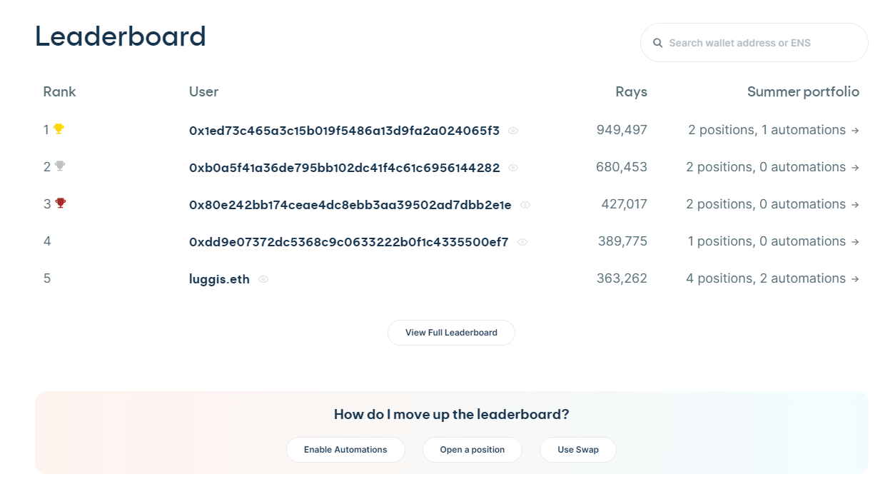 Keep exploring, optimizing your moves, and stacking those $RAYS to secure your spot at the top.